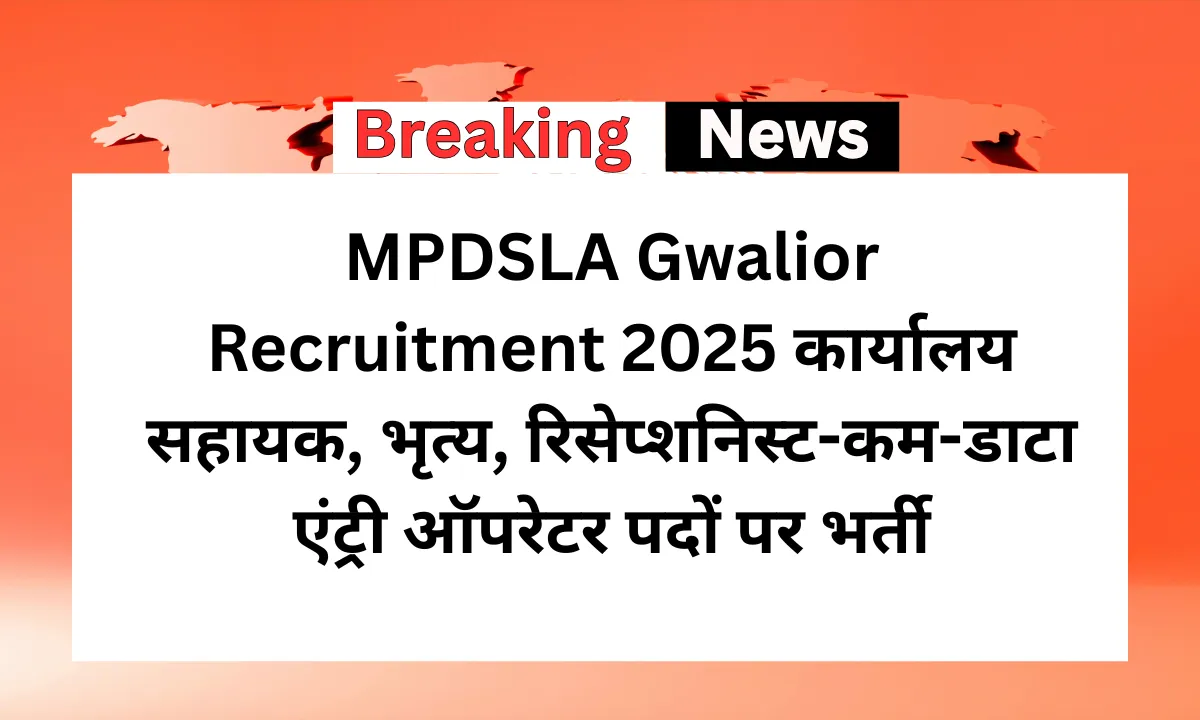 जिला विधिक सेवा प्राधिकरण (District Legal Services Authority – DLSA) ग्वालियर ने वर्ष 2025 के लिए कार्यालय भृत्य, कार्यालय सहायक, रिसेप्शनिस्ट-cum-डाटा एंट्री ऑपरेटर के विभिन्न पदों पर भर्ती का नोटिफिकेशन जारी किया है। इस भर्ती के लिए उम्मीदवार ऑफलाइन आवेदन कर सकते हैं और इसके लिए कोई आवेदन शुल्क नहीं रखा गया है।