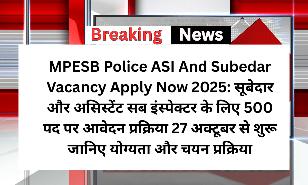 MPESB Police ASI And Subedar Vacancy Apply Now 2025: सूबेदार और असिस्टेंट सब इंस्पेक्टर के लिए 500 पद पर आवेदन प्रक्रिया 27 अक्टूबर से शुरू जानिए योग्यता और चयन प्रक्रिया